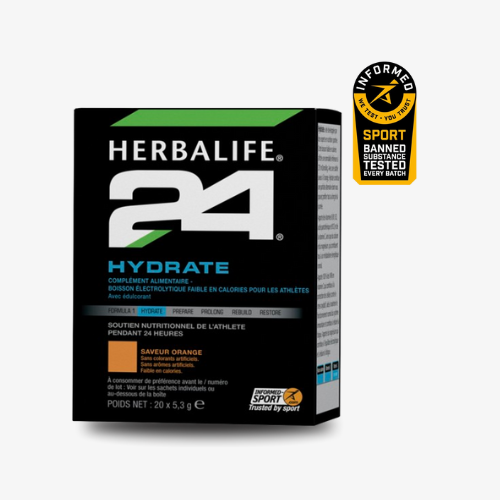 H24 Hydrate est une boisson électrolytique sans calories conçue pour favoriser la consommation de liquide. Contient 100 % de l’apport quotidien recommandé en vitamine C pour aider à réduire la fatigue et l’épuisement.